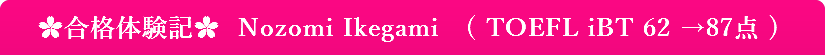 ただTOEFLの点数を上げるために入った方にとっては最初は衝撃かもしれません。もちろん違うと感じた方はやめるという選択肢もありだとは思います。でも騙されたと思って少しいてみたら気づくことも多くあると思います。それをどう生かすかは自分次第と思うので頑張ってください!!