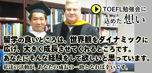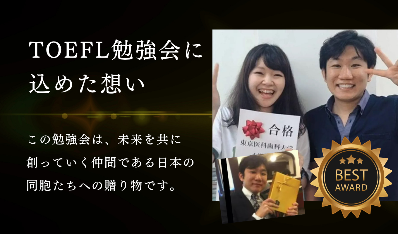 いつも人を励まし、相手のために一生懸命になる人。話し初めてたら、あなたも一瞬で彼の魅力に 引き込まれます。そして他でもない「 あなた自身の魅力と可能性にも気づかされ、自分も頑張りたい!」と強く感じるようになるはずです。上司より、先輩より、あなたの親友よりも1番頼りになるのが「 TOEFL®勉強会代表,:ささきっち(愛称) 」です。
