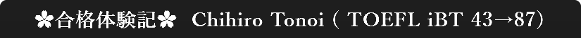 それぞれ夢は違うのに、TOEFLという同じ目的をもってみんなで肩組んで頑張ることが出来てとても楽しかったです。辛いことももちろんありました。量的な意味でいったら辛くて逃げ出したいことの方が多かったかも知れないです。けれど、それ以上にみなさんと励ましあって、夢を語り合って、一緒に朝から夜まで勉強した日々は楽しく充実していました。 この先続けていくと、どこかで壁にぶつかるかも知れません。私も半年間70点代をさまよいました。結果がでないときは自分は向いていないんじゃないか、やめたほうが幸せなんじゃないか、夢を追いかけていることで周囲に迷惑をかけているんじゃないか、そう思うこともたくさんありました。 だけど、それでも、諦めずに続けてください。諦めなければ、絶対に道は開けます。諦めてしまえばそれまででです。 TOEFLの勉強を始めた理由や自分の夢、やりたいことを思い出してください。 そしてみなさんを支えてくれている人はたくさんいるはずです。 そうした方へ感謝の気持ちを忘れずに続けていれば必ず道は開けます。